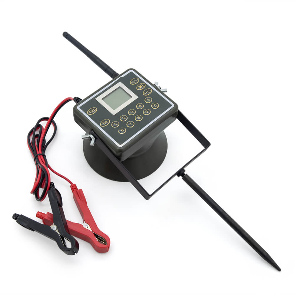 Электронный манок выполнен в одном корпусе с водонепроницаемым динамиком. Манок содержит до 210 голосов различных животных и птиц. Мощность усилителя до 60 Вт. Манок позволяет подключать дополнительный динамик. Лицевая панель прибора оборудована кнопками управления и ЖК дисплеем, на котором отображаются действующие настройки прибора. Встроенный таймер позволяет настраивать воспроизведение любого голоса из набора в любое время и в любую дату. Питается манок от внешнего аккумулятора напряжением 12 вольт.